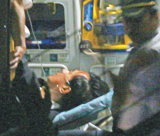 看阿扁臉色很蒼白,高院一度準備將他送臺大醫(yī)院。法警拿毛毯、枕頭供他休息,救護員又多次測量他的生理狀況;晚上10時30分,阿扁臉色已漸回復(fù)正常,血壓、血氧、脈搏一切正常,合議庭決定阿扁不送醫(yī),直接還押看守所,由看守所醫(yī)護室注意。阿扁即躺在救護車上、鼻上插著呼吸管回看守所。