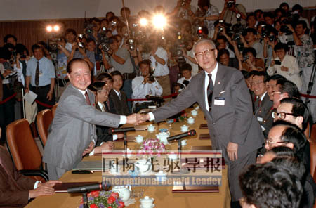 成立之初,可說是兩會協(xié)商的小陽春。海協(xié)會首任會長汪道涵和;鶗兹味麻L辜振甫,不僅達成“九二共識”,還建立了兩會定期之制度化協(xié)商機制。新加坡、上海、北京,處處留下兩會協(xié)商的身影。但經(jīng)1996年臺海危機以及1999年的“兩國論”事件,兩會協(xié)商被臺灣當(dāng)局惡意中斷。2005年,辜汪二老先后辭世,留下永生的遺憾。