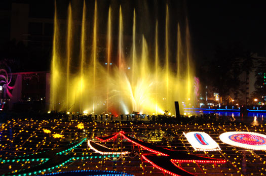 臺(tái)中公園點(diǎn)燈,燦美炫目的水舞令民眾驚嘆。