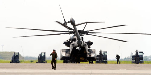 美軍派遣直升機(jī)首度來臺進(jìn)行人道救災(zāi),昨臺灣災(zāi)害應(yīng)變中心公開發(fā)布訊息,都指來臺援助的是CH-53E“超級種馬”運(yùn)兵直升機(jī),結(jié)果美軍昨天飛來的直升機(jī),外型看起來和CH-53E不一樣,當(dāng)下連臺灣軍方都傻眼,原來這架直升機(jī)是另一型MH-53E“海龍”掃雷直升機(jī)。不過軍方強(qiáng)調(diào),兩種直升機(jī)雖不同型,但屬同款,一樣可以協(xié)助吊掛怪手救災(zāi)。