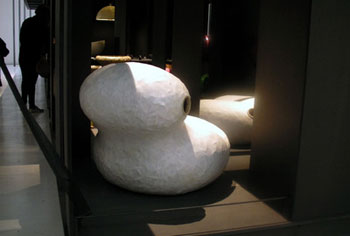王俊隆還費時2年半研究“作繭計劃”制成“蠶繭沙發(fā)”,王俊隆就此作品表示,記起小時候?匆娪腥硕敷移屏,就在夜間放蠶寶寶在斗笠破處,隔天蠶寶寶便會吐絲把斗笠破洞修補好,因此他不斷實驗,讓5000只蠶寶寶在竹編沙發(fā)上吐絲,把沙發(fā)的2個橢圓型,包覆成2個巨大的蠶蛹。