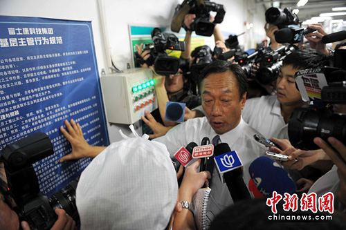 郭臺銘表示,富士康在深圳有45萬員工,必須有效管理,稍后會有心理專家向媒體分析個案。