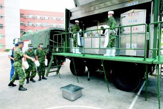 軍方規(guī)劃未來部隊每六個月,選擇一天吃兩餐可加熱野戰(zhàn)餐盒、一份野戰(zhàn)口糧。美軍多年實戰(zhàn)經(jīng)驗,在野外的戰(zhàn)士若是能吃到熱食,對于士氣有很大的幫助。臺灣過去沒有野戰(zhàn)炊事車,近幾年才開始由聯(lián)勤司令部研發(fā),同時在漢光演習(xí)中進行實地的野戰(zhàn)測試。
