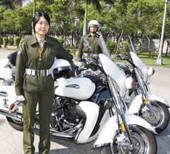 張書毓去年剛從陸軍官校2009年班畢業(yè),她就讀軍校后一直向往“憲兵”摩托車連在閱兵時(shí)操演的英姿,官校畢業(yè)進(jìn)入“憲兵”學(xué)校受分科教育時(shí),張書毓立即報(bào)名參加摩托車連征選排長。