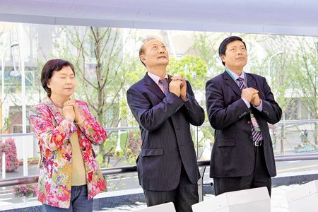 報(bào)道說(shuō),厲無(wú)畏等人在臺(tái)灣館天燈水臺(tái)下許下“國(guó)泰民安”心愿,當(dāng)天燈緩緩升起,厲無(wú)畏、夫人鄭秀珠女士不時(shí)抬頭仰望,鄭秀珠女士更闔上雙眼虔誠(chéng)地合十祈福。