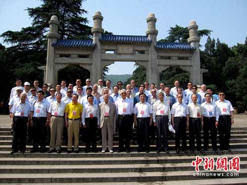 今日的南京睛空萬里,艷陽高照。兩岸退役將軍們平均年齡已近古稀,許多都已是耄耋之年的老人,沿著392級臺階而上,揮汗如雨卻不輕言退卻。累了,彼此攙扶著堅持登階而上。最終40余位將軍在孫中山坐像前共同三鞠躬。