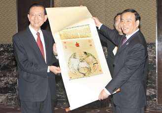 中新網(wǎng)6月12日電 據(jù)臺灣《聯(lián)合報(bào)》報(bào)道,浙江省長呂祖善率領(lǐng)的浙江省代表團(tuán)十一日到新竹科學(xué)園區(qū)、工研院、臺積電參訪,中午與晚間分與臺灣呂氏宗親及中部三縣市長、“立委”們餐敘。“立委”呂學(xué)樟以世界呂氏宗親會(huì)理事長身份款待呂祖善一行,呂祖善回贈(zèng)“呂祖謙全集”共十六冊,他說從未遇過這么盛大的懇親會(huì)場面,非常溫馨。