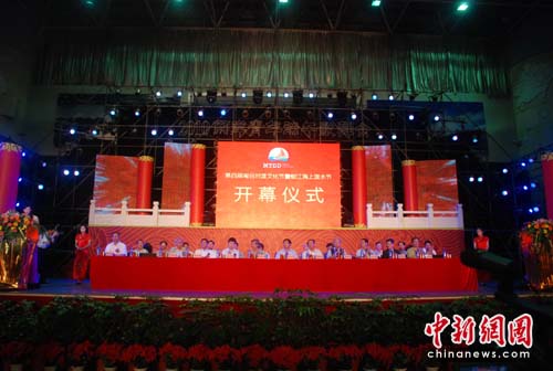 中新網石獅6月17日電(林永傳 郭斌)16日是中國傳統(tǒng)端午佳節(jié),也是閩南所稱的“五月節(jié)”。當晚,第四屆閩臺對渡文化節(jié)暨蚶江海上潑水節(jié)開幕式在福建石獅市體育館舉行。