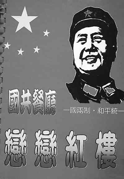 我在金門旅游時(shí),幾位年輕的郵友帶我來到金門老街。這條老街據(jù)說已經(jīng)有幾百年的歷史了,大部分店鋪都保存著原有的風(fēng)貌。這些店鋪主要經(jīng)營(yíng)當(dāng)?shù)氐耐撂禺a(chǎn),比如金門貢糖、金門高粱酒、金門牛肉干、金門陳皮果,還有金門菜刀等,店鋪也像古代的酒店一樣,旗幡當(dāng)街飄揚(yáng),兩旁一盆盆的鮮花清香四溢,酒香花美,街道中央不時(shí)能看到百年的榕樹,盤根錯(cuò)節(jié)。海風(fēng)陣陣,這真是濤聲依舊,又見千年的滄桑,百年的風(fēng)雨,令人心曠神怡,不知今夕何夕。信步走來,我們想找個(gè)地方歇歇腳,喝喝咖啡。抬頭一看,前面“國(guó)共餐廳”4個(gè)大字極為醒目,紅旗飄揚(yáng),“走進(jìn)新時(shí)代”的歌聲清脆悅耳。我想:此時(shí)竟在何方,難道我們現(xiàn)在是在大陸嗎?難道國(guó)共雙方的代表曾在這里見過面嗎?我們帶著好奇心走進(jìn)了餐廳,美麗的小姐說著流利的普通話,熱情地歡迎我們,請(qǐng)我們?nèi)胱瑸槲覀兤悴,而且馬上遞給我們一個(gè)菜譜。這菜譜一看,全是紅色,著軍裝的毛澤東像赫然在目,還有“一國(guó)兩制,和平統(tǒng)一”的口號(hào),還印著五星紅旗。打開菜譜一看,有不少大陸的名菜,也有毛澤東喜歡吃的紅燒肉、臭豆腐,真是令人激動(dòng)!