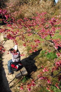 久聞阿里山是全臺(tái)灣櫻花最美的地方,光是從日本傳來的染井吉野櫻就多達(dá)1900多株,像是阿里山派出所、阿里山賓館、沼平車站及沿線、貴賓館、木蘭園、林務(wù)局招待館、三代木等處,都可以欣賞染井吉野櫻花海如雪的蹤影,三月中開始綻放、三月底進(jìn)入盛開期的染井吉野櫻,可說是阿里山櫻花季最美麗的主角。高山地區(qū)濕冷多霧,使花瓣呈淡雪色、花心粉紅的染井吉野櫻看起來像是一層層暈染在山頭的雪白云海,當(dāng)山間微風(fēng)掠過,迎面撲來如雪花般輕柔的櫻花雨,弱不禁風(fēng)的姿態(tài)讓人覺得凄美的悵然。但若是天氣晴朗的午后,黃昏前夕陽的光暈照射在櫻花上,平常看起來脆弱嫩白的花瓣彷佛吸取了陽光精華,變成極為嬌艷的粉紅色,完全是截然不同兩種花顏,令人驚詫。