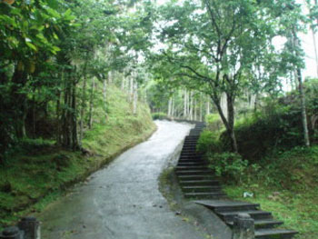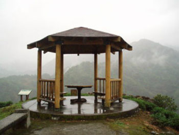一路上爬,到達遠高處,山路又盤而向下,然后再上盤往另一高崗。抵達另一高處時,路旁設(shè)有一座雨量測量站,這里也是車道的終點,前方不遠處有一涼亭。由水柳腳形象商圈的牌樓至涼亭,約1.2公里,路程約25分鐘。