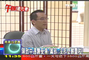 傳陳致中在處理一件案子時,因委托人雙方發(fā)生爭吵,出面勸架時被抓到滿身傷。圖片來源:臺灣TVBS