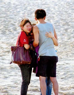 接獲惡耗的家屬相繼趕到后湖海灘,有人癱倒在親人懷抱中,不停哭喊愛(ài)子的名字,要他們趕快回來(lái),有的則手持念珠面向大海,盼望出現(xiàn)奇跡,天下父母心的焦灼憂慮,讓蜂擁關(guān)切的民眾看了也心酸。