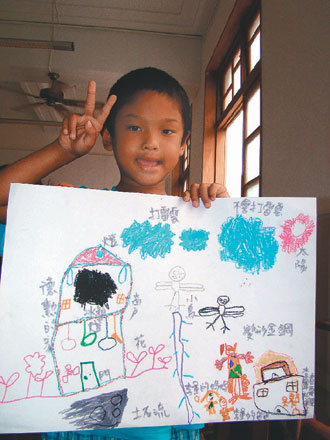 中新網(wǎng)8月18日電 據(jù)臺灣《聯(lián)合報》報道,“我想畫出變形金剛,保護(hù)我家不再讓土石流沖毀!”高雄縣志愿者17日帶著十余名受災(zāi)孩童畫畫,“畫出心中的家”,小朋友們畫出的家園景像令人心疼;還有孩童畫到一半跑到窗戶邊遠(yuǎn)眺說:“好想回家!