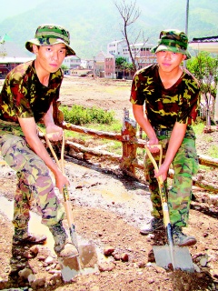 村民說,進入桃源鄉(xiāng)救災的臺軍都很年輕,“看到這群80后流汗付出,讓我們很感動!睘楦兄x他們協(xié)助重建家園,炒野菜、殺山豬幫臺軍們加菜。