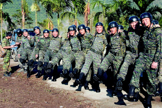 中新網(wǎng)8月25日電 據(jù)臺灣《聯(lián)合晚報》報道,救災臺軍官兵傳出甲型流感疫情后,民間捐贈的防水透氣材質特戰(zhàn)軍靴25日清晨起由直升機運至第一線山區(qū)救災部隊官兵手中,在馬英九巡視高雄縣那瑪夏鄉(xiāng)民族、民權、民生等村落前,執(zhí)行救災任務的25名海軍陸戰(zhàn)隊官兵都趕忙換到新靴子。