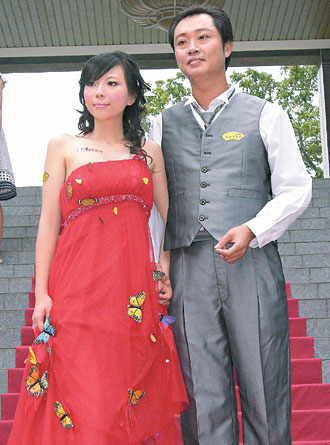 新郎顏志達(dá)為實(shí)現(xiàn)承諾,問到女友工作的度假村,總經(jīng)理答應(yīng),活蝴蝶先以紙張包起來,冰在7℃低溫2小時(shí),讓蝴蝶類似冬眠般昏睡,再取出“貼”在禮服上,蝴蝶則是利用冰凍的水氣貼在衣服上。