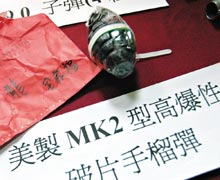 落網(wǎng)的30歲嫌犯李坤龍供稱,這批軍火是他向別人買二手車時,原車主留下來的,對于李嫌的說詞,警方不但不采信,并向其訓(xùn)誡說,“買車附贈手榴彈!你當(dāng)我三歲小孩!”
