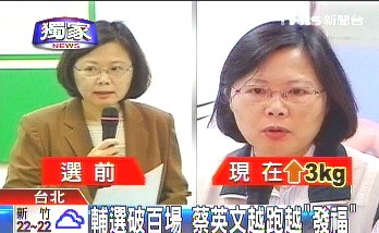 選舉結(jié)束后,大家發(fā)現(xiàn)民進(jìn)黨不少人似乎都圓了一圈,甚至包括蔡英文,被指稱從電視看起來臉圓了不少。因此,民進(jìn)黨中除了桃園縣長候選人鄭文燦被封為“胖周瑜”,也有人形容蔡英文是“胖貂蟬”。