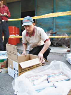 中新網(wǎng)12月11日電 據(jù)臺灣《聯(lián)合報》報道,高雄縣桃源鄉(xiāng)民吳秋櫻10日返回勤和村家,赫然發(fā)現(xiàn)房內(nèi)擺著好幾箱乳膠炸藥和電氣雷管,合計有40公斤,她嚇得趕緊通報消防分隊,承包商確認屋內(nèi)炸藥為越域引水工程用的。