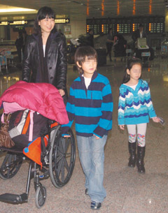 中新網(wǎng)1月21日電 據(jù)臺(tái)灣《聯(lián)合報(bào)》報(bào)道,國(guó)民黨秘書長(zhǎng)金溥聰?shù)钠拮又芑坻门c一雙兒女結(jié)束5個(gè)月的華盛頓之旅,20日清晨返抵臺(tái)灣。由于周慧婷之前才摔傷,一路上還得照料2個(gè)也都受傷的孩子,一到桃園機(jī)場(chǎng),周慧婷帶著孩子上車走了,讓趕來接機(jī)的金溥聰撲了空。這對(duì)糊涂夫妻還得靠記者幫忙傳話,連周慧婷也笑說:“我不知道他要來接,他可能是想給我驚喜!