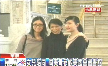 為了云門的歡迎酒會,周美青還特地換上了黑色長裙套裝,兩個女兒馬唯中、馬元中也從紐約趕到華府陪母親,在這個正式的場合,馬家姐妹也以正式套裝美美亮相,馬唯中和媽媽一樣一身黑,馬元中則是穿上了淺咖啡色小洋裝。