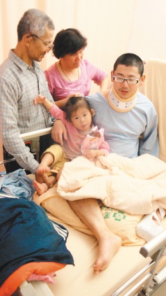 中新網(wǎng)3月3日電 據(jù)臺灣《聯(lián)合報》報道,孝子扛家計,卻因惡性腫瘤住院經(jīng)濟斷炊。新竹縣28歲的葉棟耀從高中時天天凌晨4點起床送報,現(xiàn)在則白天當(dāng)保全員,晚上與身障妻子賣口香糖,養(yǎng)活父母和女兒一家6口,日前卻罹患惡性骨腫瘤住院,下半身恐癱瘓,父母老淚縱橫“這么孝順的孩子,怎么這么歹運!”