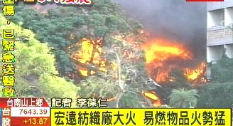 位于臺南縣山上鄉(xiāng)的宏遠興業(yè)公司廠房,今天上午地震發(fā)生幾分鐘后傳出火警,火勢由自動倉儲庫房開始延燒,并波及一旁宿舍區(qū),廠方緊急疏散,初估損失新臺幣上億元。