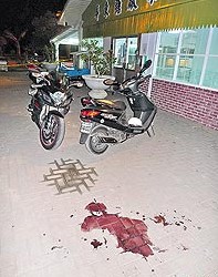 警方說,涉嫌殺人的男子是還在金門當兵的蘇信瑋(二十四歲,高雄人),被害人則是大學四年級女學生郭依婷(二十三歲、屏東人),郭女背部身中六刀,其中一刀深及肺部造成血胸,送寶建醫(yī)院。蘇男殺人后,持刀自刺左頸、左上臂、左手腕各一刀,送屏東基督教醫(yī)院急救。