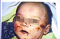遇害女嬰2008年10月20日出生,不但早產(chǎn)還有心臟、呼吸道問(wèn)題,在醫(yī)院保溫箱觀察1個(gè)月,同年11月19日才抱回家,尚未取名字就遭母親狠心打死。法醫(yī)解剖發(fā)現(xiàn),女嬰遺體頭臉、肩背、腰臀、四肢甚至下體都有瘀青斑,警方在陳婦住處找到斷成兩截的梳子、扭曲衣架與沾有血漬的嬰兒枕頭。