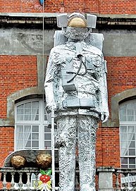 中新網(wǎng)6月7日電 據(jù)臺(tái)灣《蘋(píng)果日?qǐng)?bào)》報(bào)道,蔣介石銅像也搞角色扮演?臺(tái)北市建國(guó)中學(xué)上周五舉辦畢業(yè)典禮,因今年畢業(yè)主題為科技未來(lái)風(fēng),學(xué)生用錫箔紙包覆校門(mén)口的蔣介石銅像,并戴上保麗龍制的頭盔、氧氣筒,變身太空人,祝福建中人畢業(yè)后能邁開(kāi)大步。校方表示,學(xué)生創(chuàng)意未丑化銅像,不擔(dān)心惹政治爭(zhēng)議。