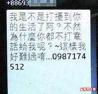 民眾藍(lán)先生昨日在臺(tái)北市議員李文英陪同下出面控訴,他十七歲兒子前天凌晨收到“為什么你都不打電話給我呢?這樣我好難過唷”短信,以為是同學(xué)而回?fù)埽钊战荧@電信業(yè)者通知暴增一萬八千多元通話費(fèi)。