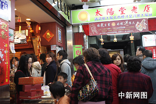 中新網(wǎng)臺中2月22日電 (屈運栩)初到臺中的人,一定會被路兩旁零次櫛比,目光應(yīng)接不暇的“太陽堂”招牌和店鋪吸引。店鋪里售賣的太陽餅是臺灣最有代表性的特產(chǎn)。春節(jié)剛過,記者走訪了臺中太陽餅老店鋪最集中的自由路,看到各間老餅鋪前都排起長隊,一片生意興隆景象。