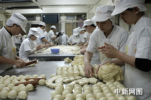 走進詹益恭負責(zé)的阿明師老店的工廠里,記者了解到太陽餅制作的全過程,也終于知道太陽餅之所以在味道和口感上與眾不同的“秘訣”。太陽餅制作共五道工序。在按照傳統(tǒng)配方選取中筋面粉,低筋骨后,要將面鞣到合適的軟硬度。接著分成雞蛋大小的面團后加入“酥”,這個所謂的“酥”是讓面皮酥軟的關(guān)鍵材料。接著搟皮要層次夠,且力道均勻,裹入內(nèi)餡的牛舌狀面皮厚度需非常平均。在包入麥芽糖餡的時候完全依靠師傅的經(jīng)驗和細心。包多包少,手法的生熟都會影響到最后出爐成餅的質(zhì)量。最后烘烤的時候,根據(jù)餅的大小,調(diào)節(jié)溫度和時間。時間上的控制直接影響到麥芽餡的沸騰和蒸發(fā)程度,從而影響到口感?镜臅r間過長則餡兒太硬,不夠的話又不夠香酥。
