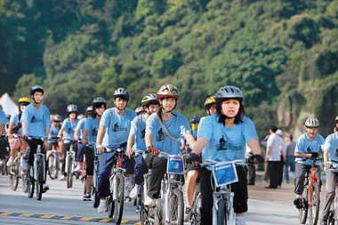 中新網(wǎng)4月22日電 據(jù)臺(tái)灣《中國時(shí)報(bào)》報(bào)道,臺(tái)北縣19所高中職校1000余名學(xué)生,參加縣府舉辦的“單車成年禮”活動(dòng),21日有520名學(xué)生挑戰(zhàn)成功,22日還有560名學(xué)生要挑戰(zhàn)90公里的單車旅程。