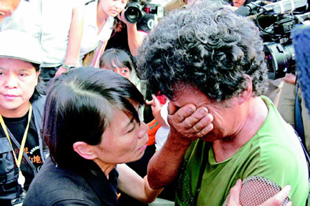 另外幾個地方,同樣有許多聲淚俱下的災民,她依然不斷輕撫災民的肩、背,撫慰大家:“我們一起面對困難,要堅強、勇敢地站起來,走出難關。”