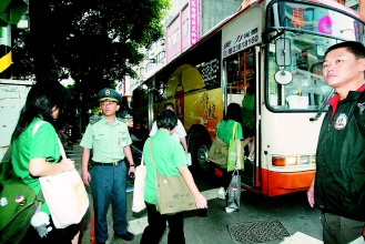 郝龍斌上午巡視加開的免費接駁學生公交車,臺北市規(guī)劃,今天上、下學時間每3分鐘一班,接送教育大學、教大附小、弘道中學學生上下學,清晨第1個班次大約在6點35分發(fā)車。