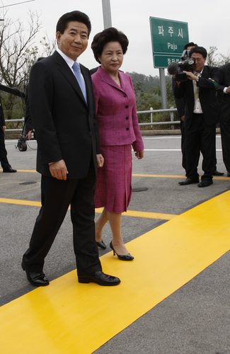 2007年10月2日上午,韓國總統(tǒng)盧武鉉跨過了韓朝軍事分界線,成為首位跨越軍分線入朝的韓國總統(tǒng)。朝鮮官員在軍事分界線朝鮮一側歡迎。