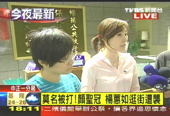 報(bào)道稱,一名年約30歲的女子突然拉扯顏圣冠的馬尾,楊蕙如上前制止時(shí),遭到抓傷,2人隨即到仁愛醫(yī)院驗(yàn)傷,幸好只是輕傷,不過都受到驚嚇,到警察局制作筆錄。