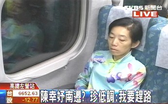 拍完照,吳淑珍看起來心情不錯,只是不知道是不是為了陳幸妤的事情操煩,吳淑珍和陳致中母子在高鐵上都哈欠連連。