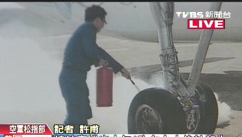 臺空軍司令部上午也表示,該專機落地滑行時,“右主輪癟氣起火”。