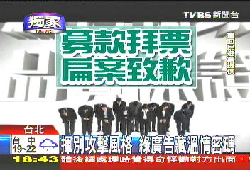 民進黨3支廣告里都有密碼,第一波擦亮招牌,最經(jīng)典的鞠躬畫面,代表誠意募款,更隱含著對風(fēng)風(fēng)雨雨的扁案,那沒說出口的歉意。蔡英文在廣告中表示:“我們經(jīng)常被問,民進黨的理想性是否仍在?”