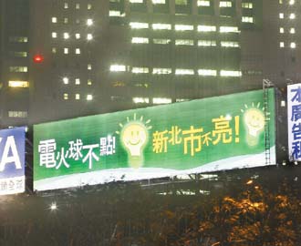 此外,板橋火車站旁客運站上方,上周六出現(xiàn)一面“電火球不點、新北市不亮”大型廣告牌,勸進蘇貞昌參選新北市長,臺北縣府雖覺得刺眼,昨天仍核準該廣告。