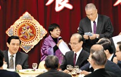 除“行政院”外,國民黨也席開四十桌,辦桌請黨工吃尾牙,黨主席馬英九大方送出六項(xiàng)大獎(jiǎng),讓黨工“有吃又有拿”。歡喜過年前,馬英九還是提醒所有黨工,國民黨現(xiàn)在正在大力促進(jìn)團(tuán)結(jié)與改革,對于二月二十七日的“立委”選舉,一定會全力以赴,“希望這次有比上次更好的表現(xiàn)”。