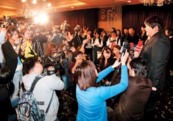 記者會(huì)上,SONY播小胖的歷程VCR,他也高唱成名曲〈I Will Always Love You〉,看到臺(tái)下成群結(jié)隊(duì)的粉絲,拿著“小胖”、“加油”的牌子,他突然哽咽:“謝謝你們,我一定會(huì)加油,不辜負(fù)大家的期望!彪S即拿起手帕拭淚,笑稱:“我鼻酸,感覺很激動(dòng),淚水混著汗水掉下來(lái)了。”大陸SONY歌手李易峰和蘇醒,分別吆喝自己粉絲,到場(chǎng)替師弟小胖加油打氣。