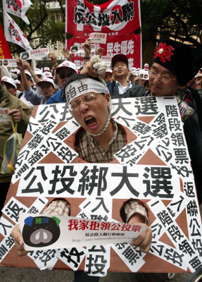 中新網(wǎng)10月26日電 臺灣“中選會”今天下午討論“立委”選舉與“公投”領(lǐng)選票方式,可能須等到晚間才會有結(jié)果。反“公投入聯(lián)”行動聯(lián)盟上午前往抗議陳情。
