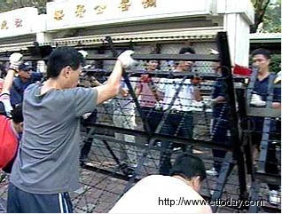 據(jù)臺(tái)灣東森新聞報(bào)道,一大早高雄“高分院”工作人員忙著在法院周邊圍墻外架設(shè)一道道路障,高雄“高分院”看起來就像是座落在銅墻鐵壁當(dāng)中,而這是為了因應(yīng)16日高雄市長(zhǎng)選舉官司二審即將宣判,高雄“高分院”為預(yù)防有心人士鬧場(chǎng)所采取的預(yù)防措施。