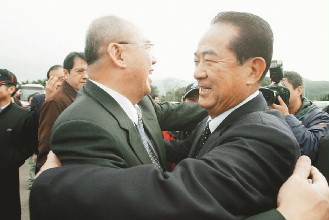 據(jù)臺灣《聯(lián)合報》報道,吳伯雄與宋楚瑜一見面即熱情擁抱,相互致意。媒體追問國親是否有合并計劃。宋楚瑜表示,國親有共同理念,“將以實際行動證明給大家看。”吳伯雄則語帶玄機地說,“請大家拭目以待!
