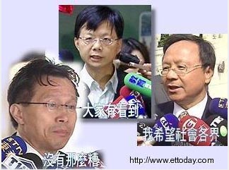 被臺灣民眾和媒體戲稱為“新三寶”、“上杜下謝連莊”的臺當(dāng)局官員。左起臺當(dāng)局“新聞局長”謝志偉、“教育部”主任秘書莊國榮、“教育部長”杜正勝。(圖:臺灣東森新聞)