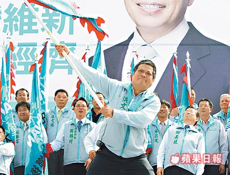 謝長廷高雄造勢 旗桿突然折斷場面尷尬(組圖)